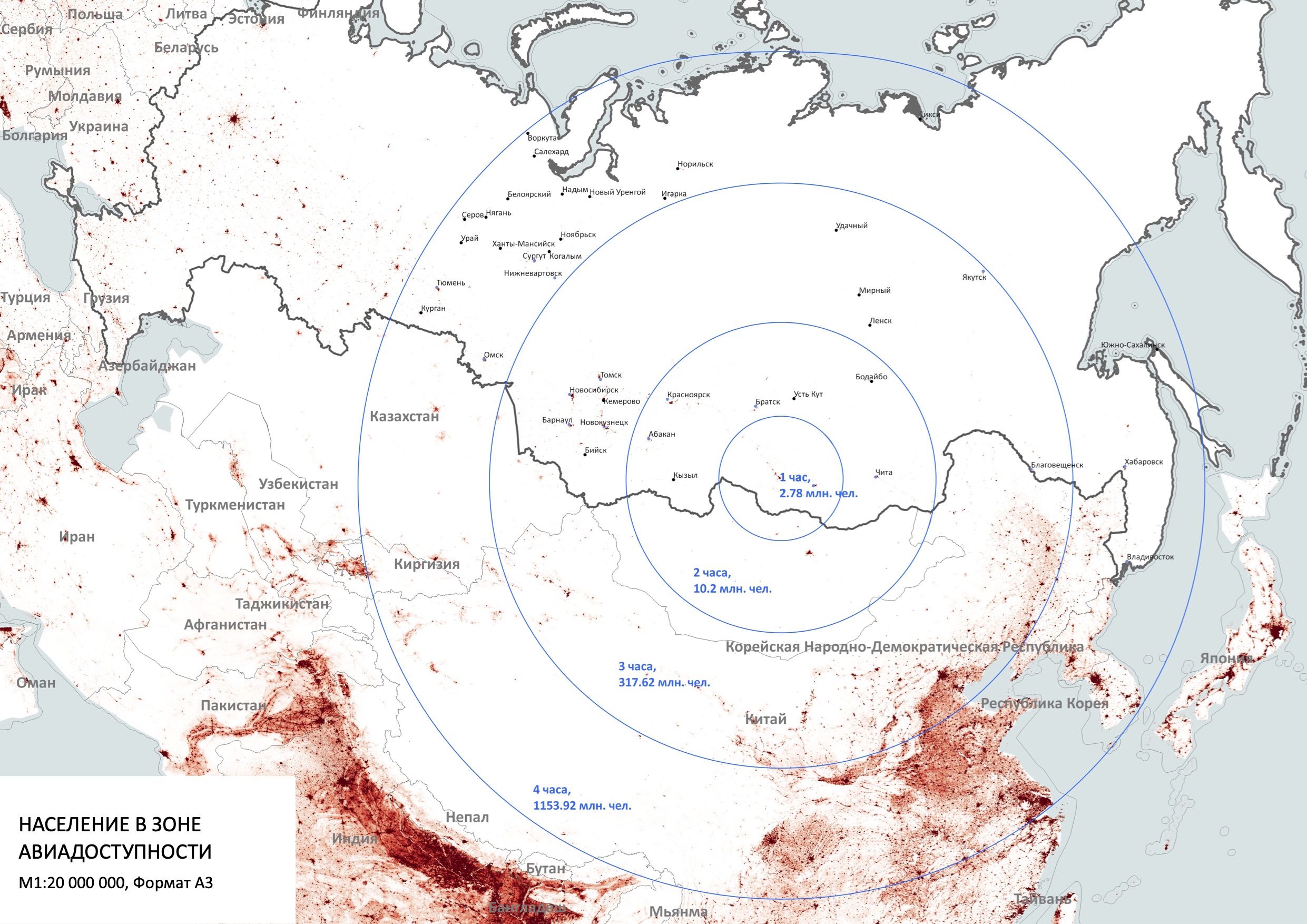 Aggregated population in the distance of 1 - 3 hours flight on plane